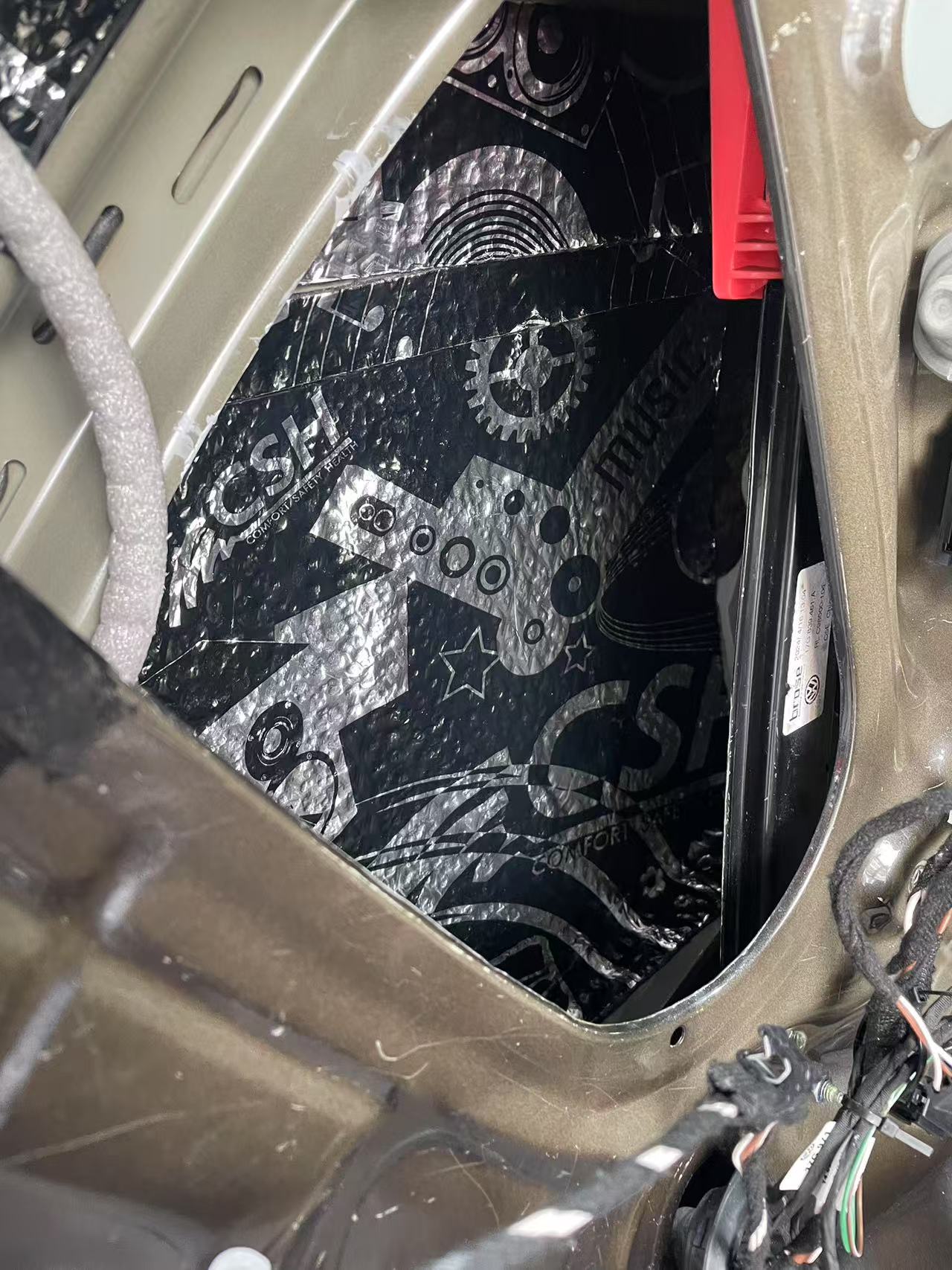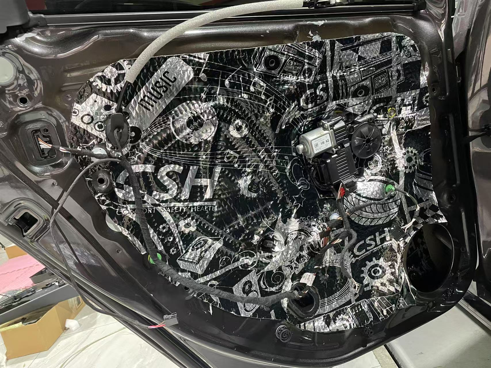 驾驶过程中,路噪、风噪、发动机噪音……这些无处不在的噪音,不仅影响了驾驶的舒适度,更可能让你在长时间驾驶后感到疲惫不堪。而汽车隔音升级,正是通过隔音材料和工艺技术,为您的爱车打造更为宁静的驾驶环境。四门铺上俄罗斯CSH银卫盾减振板,减少车门共振,降低噪音干扰,让车内音乐更为清晰。