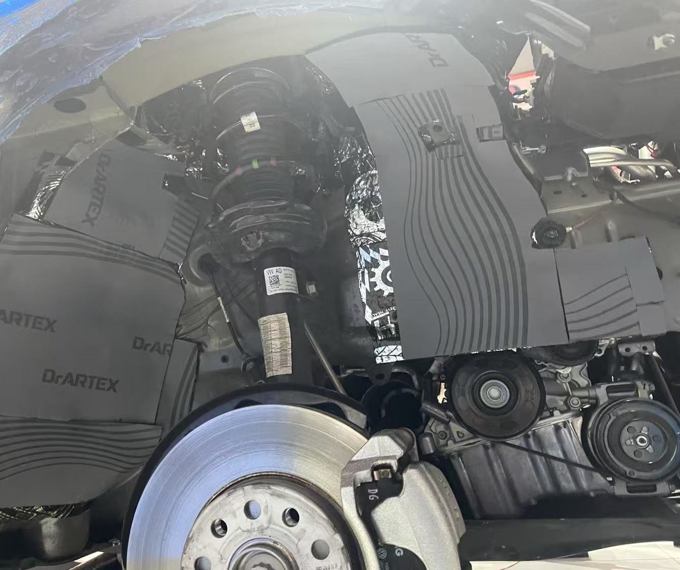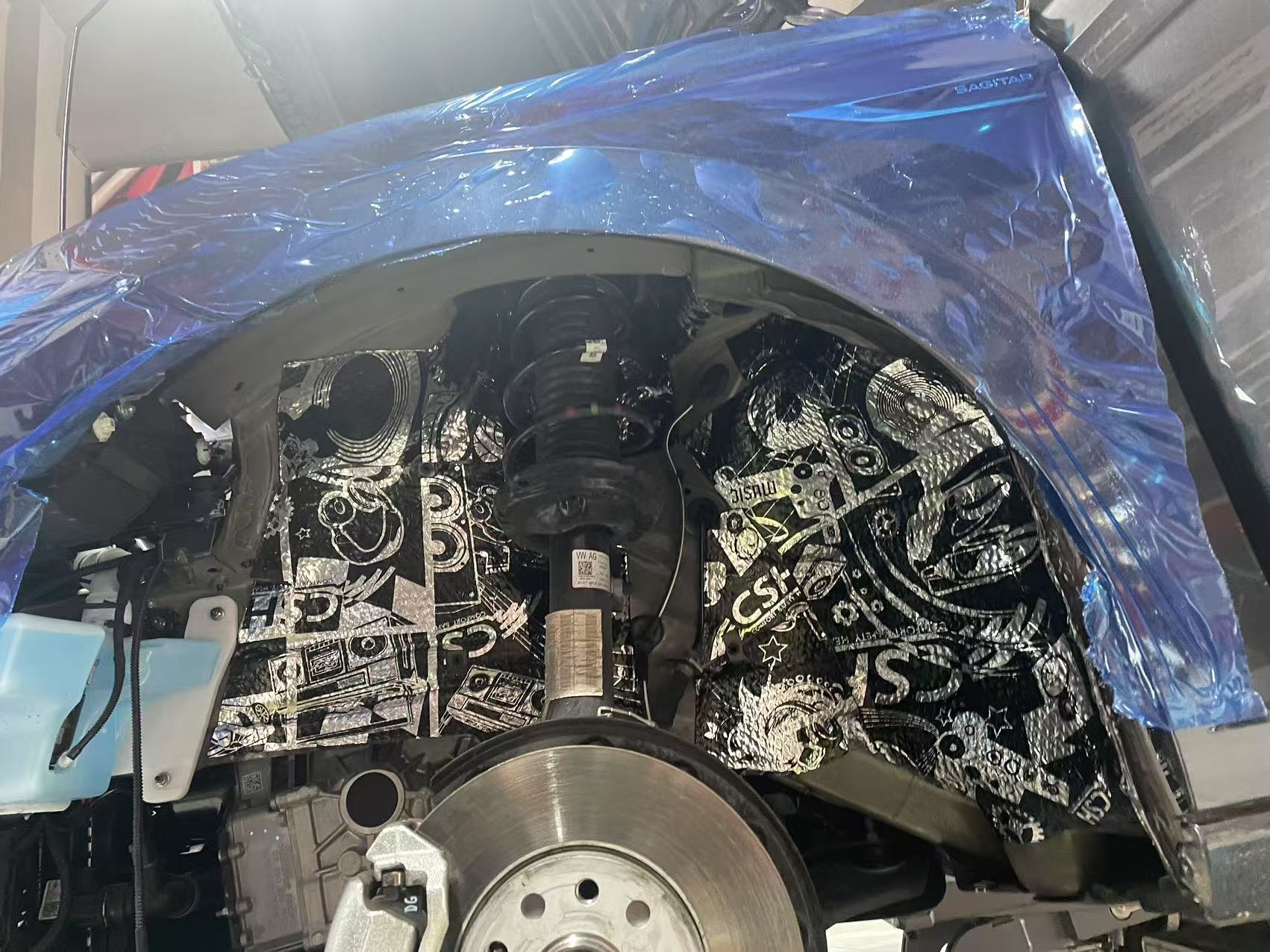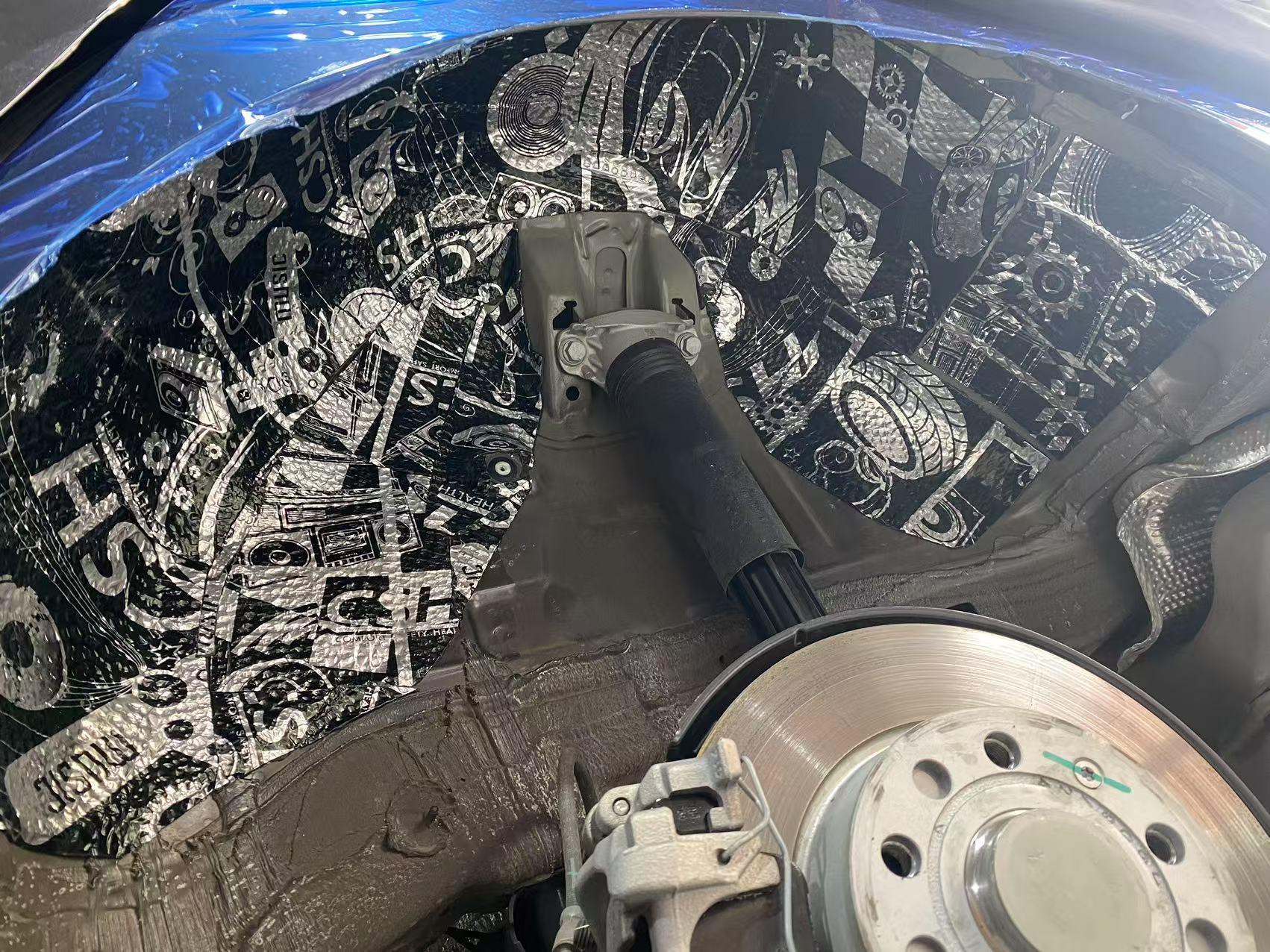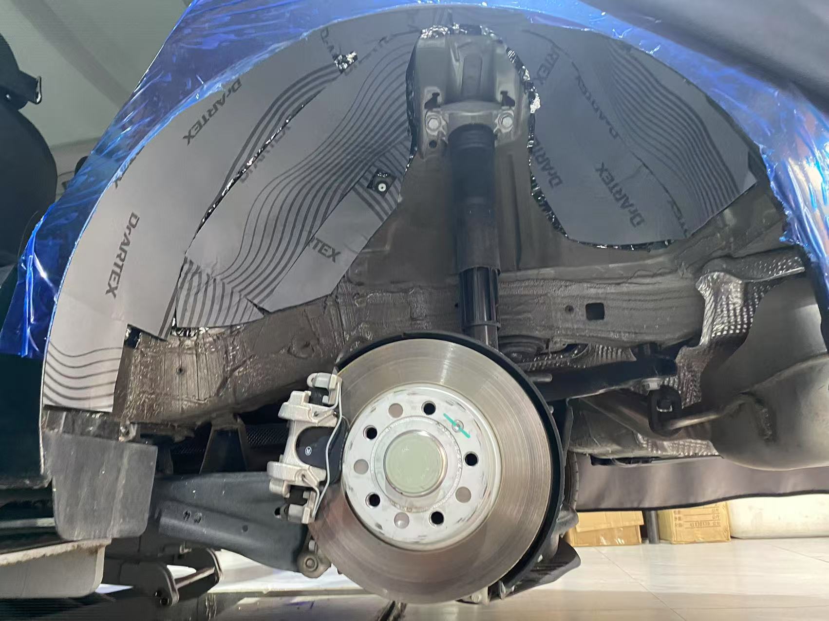 四轮铺上俄罗斯CSH银卫盾减振板+俄罗斯阿德萨超级护甲07隔音隔热棉,减少了底盘和轮胎的共振,降低胎噪路噪。