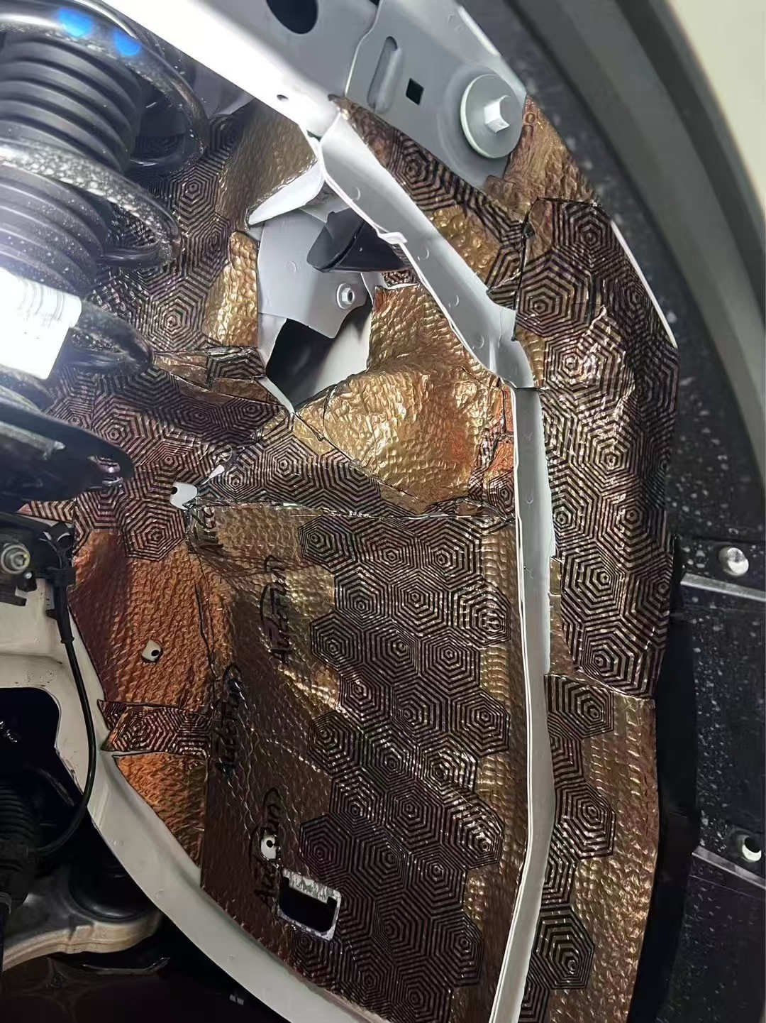轮毂采用俄罗斯Autofun潜艇减振板+俄罗斯CSH魔力棉隔音棉,通过减振隔音的作用,车辆行驶时,轮胎与地面摩擦产生的胎噪是车内噪音的主要来源之一。轮毂隔音可以减少这种噪音传入车内。原本行驶在粗糙路面上,那持续不断、令人烦躁的嗡嗡声,经过轮毂隔音处理后大幅减弱。您可以在车内更清晰地听音乐、与乘客交谈,驾驶体验变得更加舒适惬意。