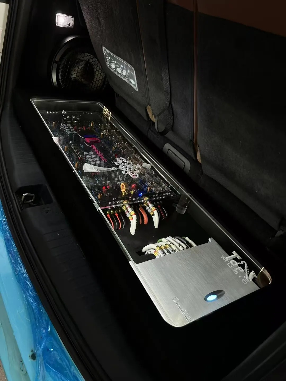 处理器选择升级歌剧世家DSP-ix18,通过调整声道平衡,让前后排乘客享受均衡的音效;利用延时功能,让声音同时抵达双耳,营造出立体的环绕声效果。