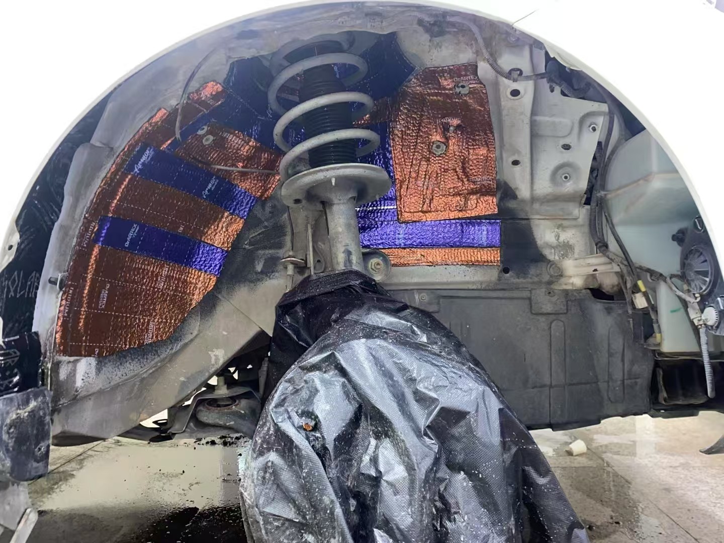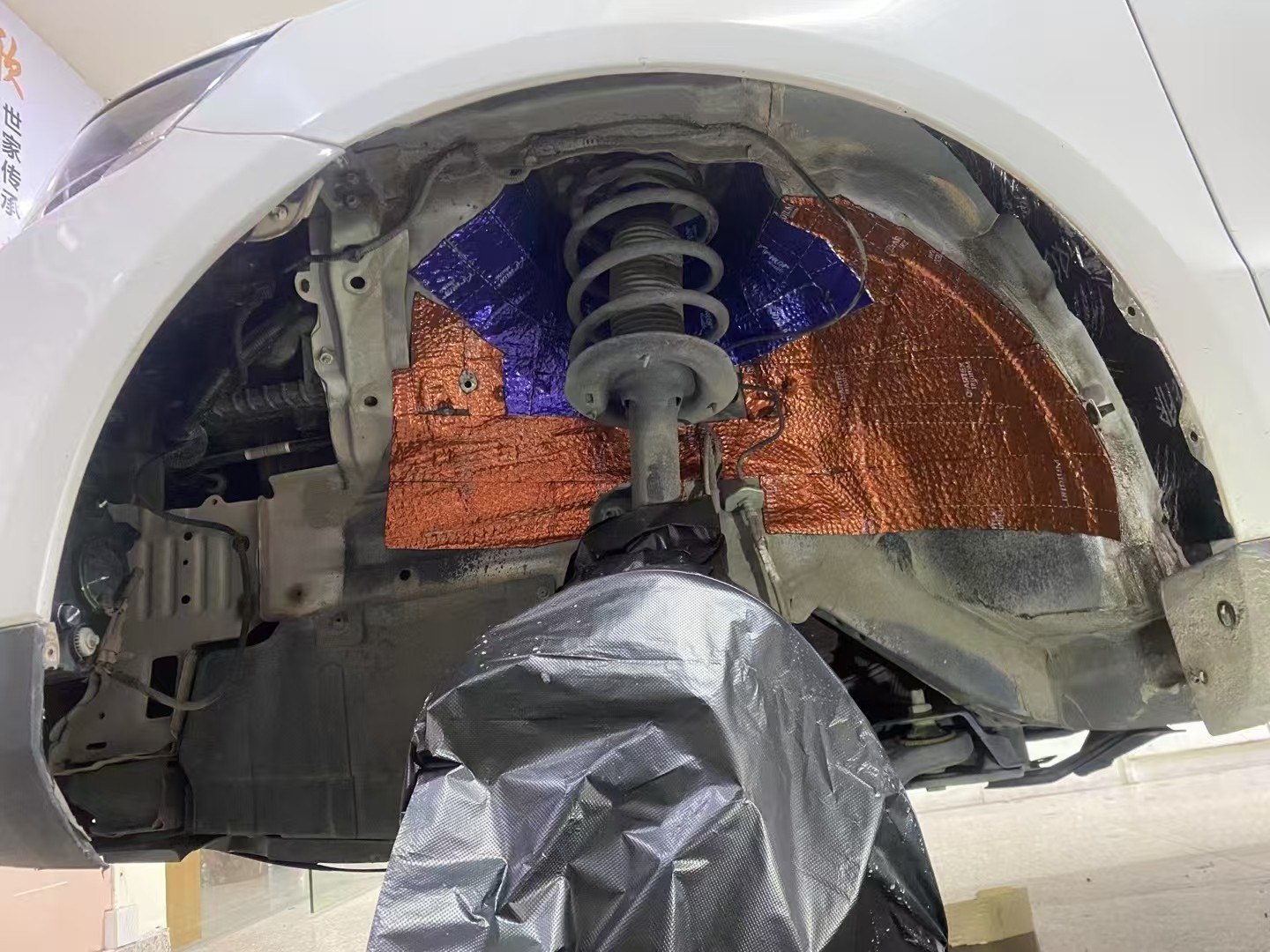 四轮铺上俄罗斯阿德萨铱甲减振板+铠甲减振板+HIFI护甲隔音棉,减少了底盘和轮胎的共振,降低胎噪路噪。