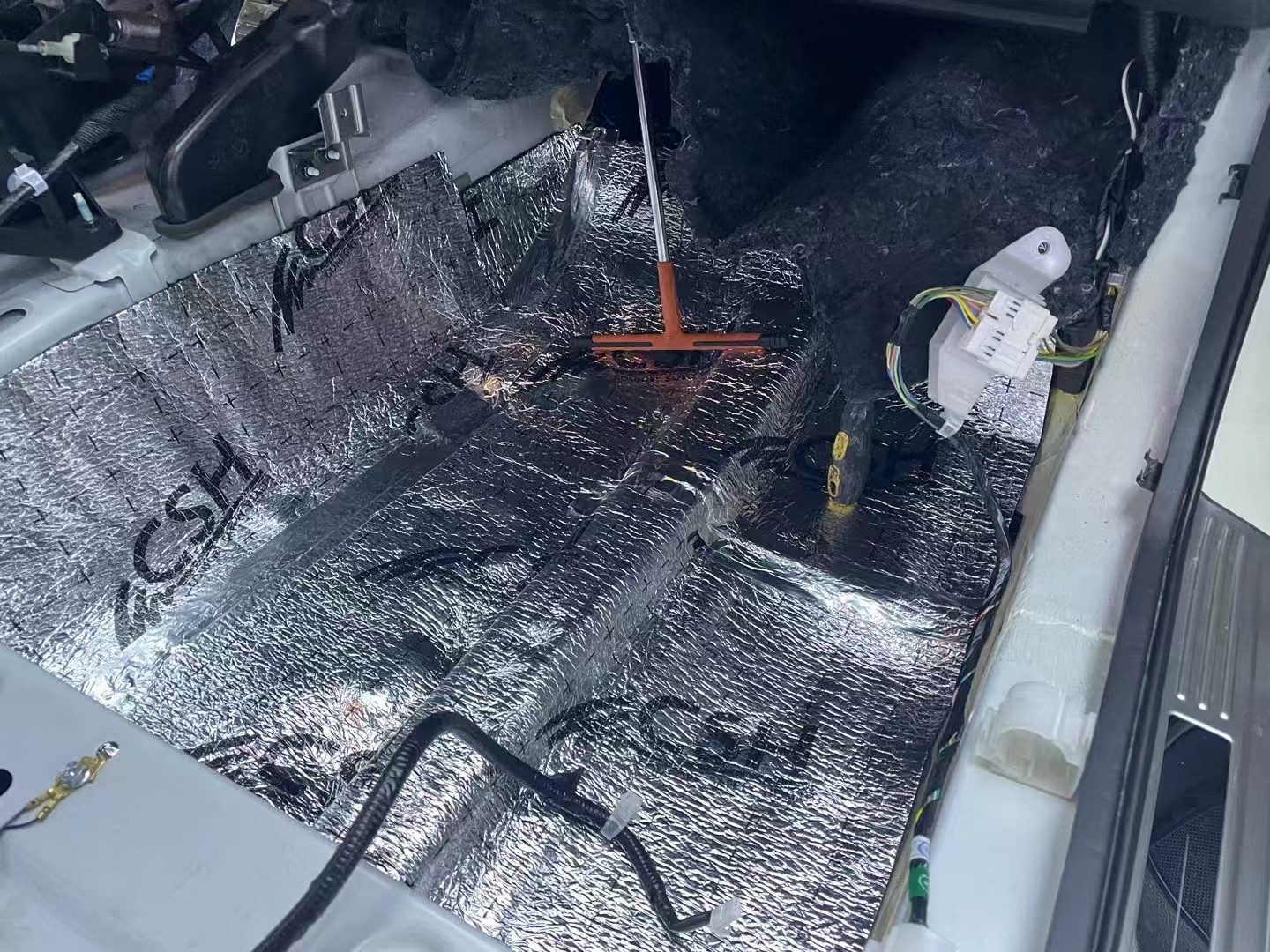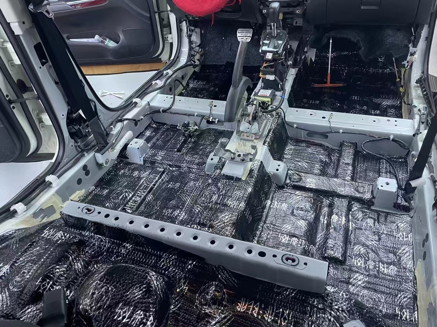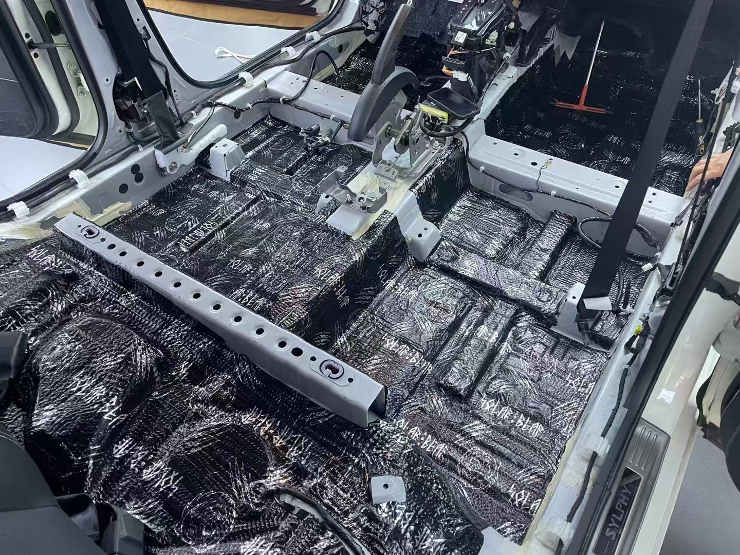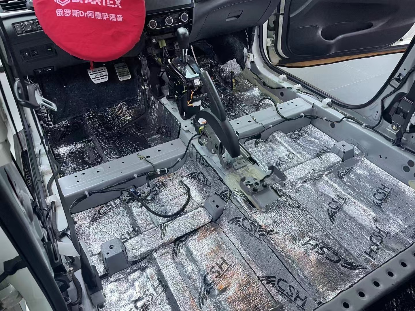 前脚踏位与底盘铺上俄罗斯北冰熊减振板+俄罗斯CSH魔力棉,减少来自路面及车辆底部的噪音与振动,为车主营造一个更加安静、舒适的乘车环境。