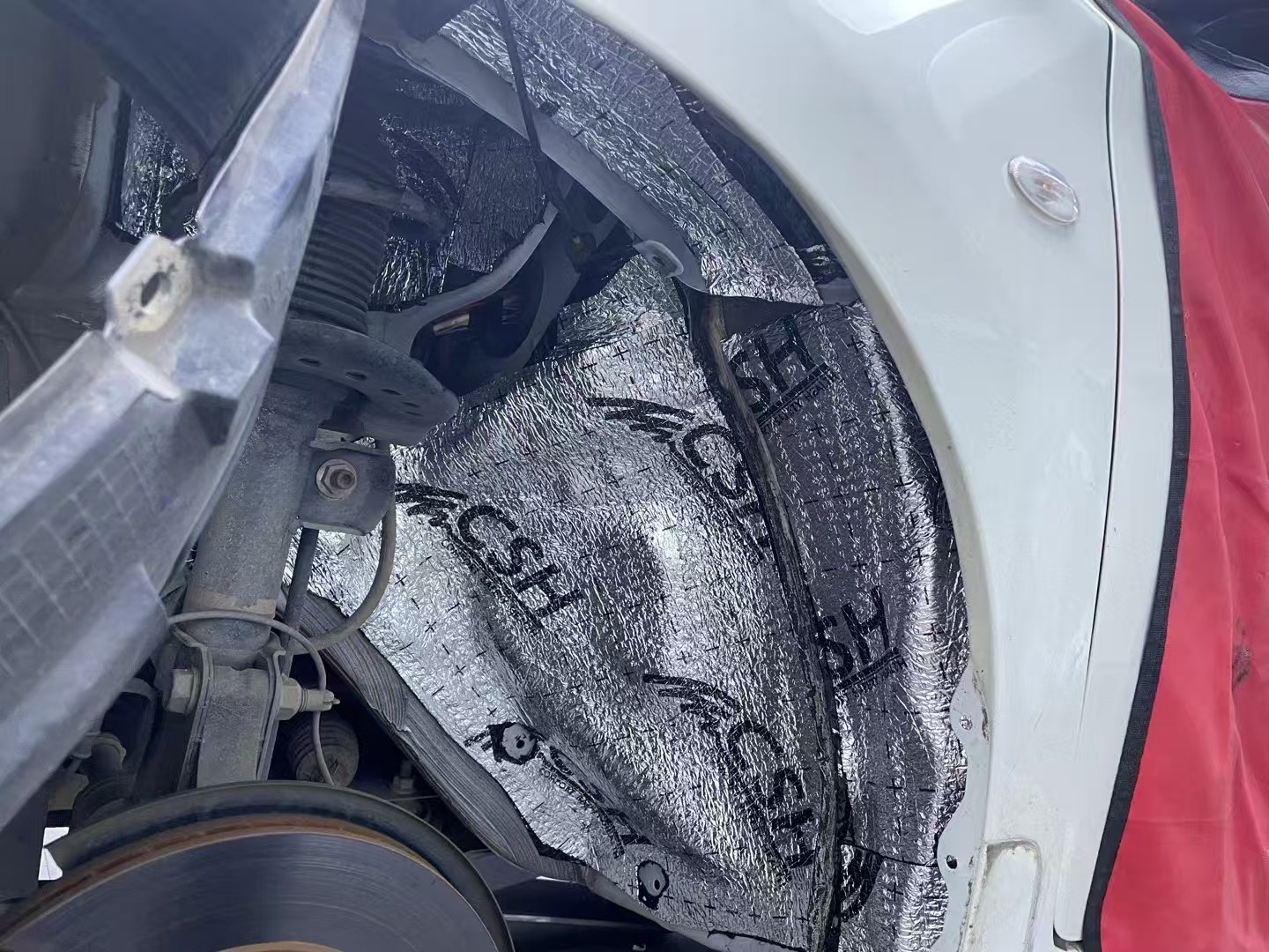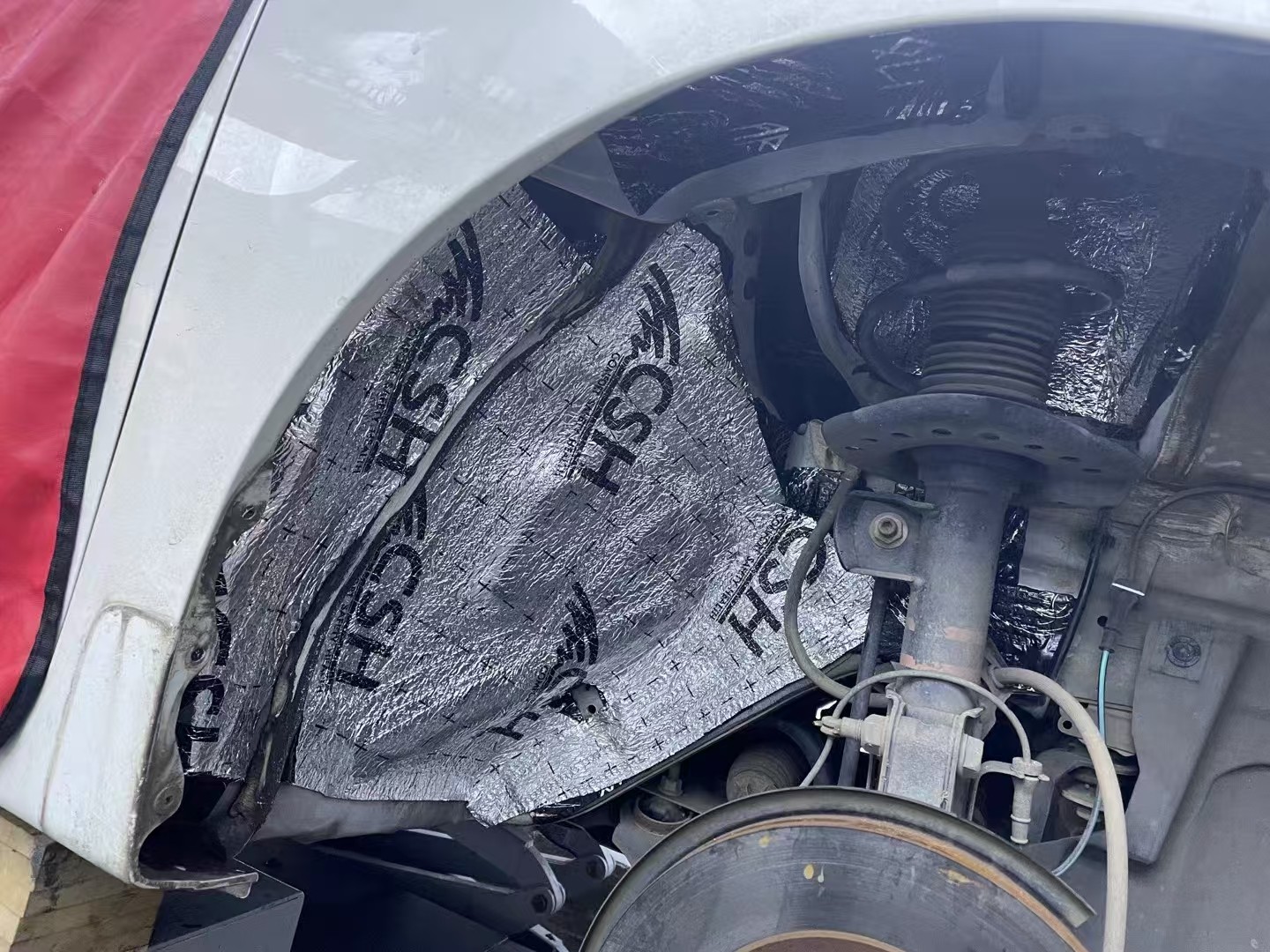 轮毂铺上俄罗斯北冰熊减振板+俄罗斯CSH魔力棉,降低胎噪与路噪。