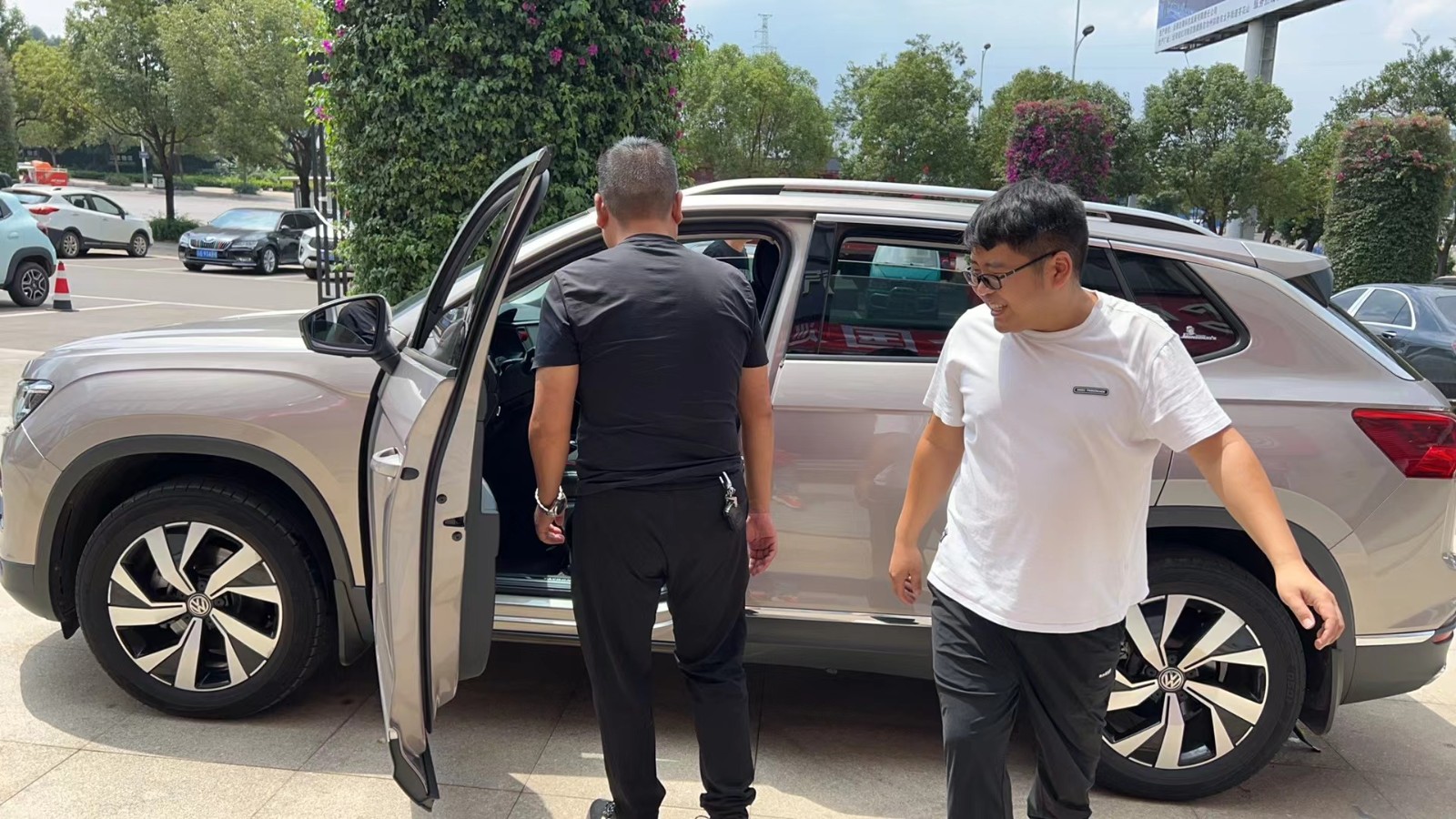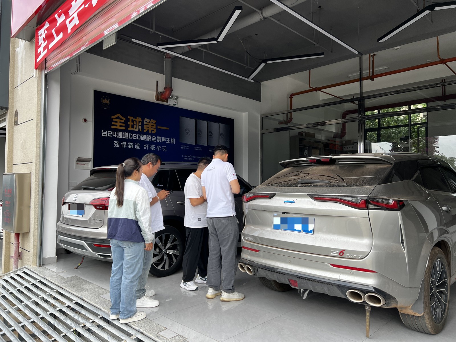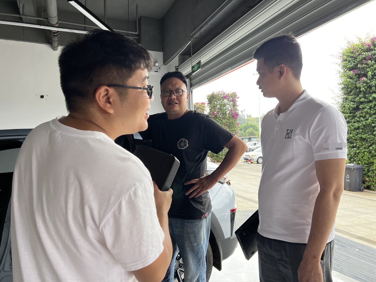 至上音乐调音师陈文龙先生、昆明至上音乐谢能烽先生、程悦汽车隔音音响升.店鹏程先生倾听车主讲述自己对车辆音响的喜好和个性化的调整需求,共同探讨如何让爱车的声音更加符合车主的心意。