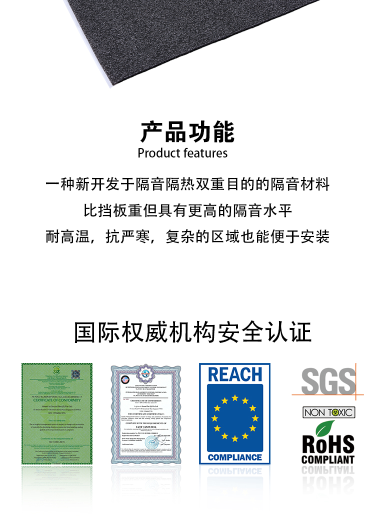 超级护甲 07作为一种设计用于隔音和隔热双重目的的隔音棉,这种材料高结构、稳定性强,能抗140℃的熔点和无吸湿性。高弹性使其在汽车复杂的区域也能轻松安装。