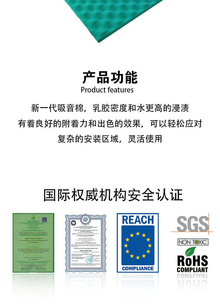 A new generation of acoustic sound absorbing foam with increaseddensity and level of latex impregnation, Has greatly improved NRC levin frequency range 100-2,000Hz, which allows him to work effectivelyover a wide range of frequencies and significantly increase the acoustic comfort in the vehicle. This material is extremely flexible, which allows it to be used on anycomplex surface easily, while ensuring good adhesion and great results.Can be easily compressed to fit into really tight spaces without negative effects on the results.