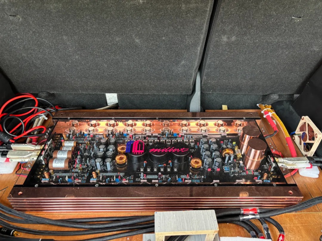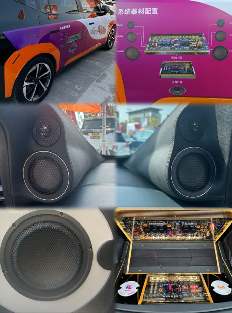 至上音乐车队在音响设备的挑选上很是用心,选用了迈博特的神使系列与天神系列功放,以及艾卡顿的三分频扬声器等音响产品。图中呈现的是本次参赛车辆所采用的音响系统工艺。