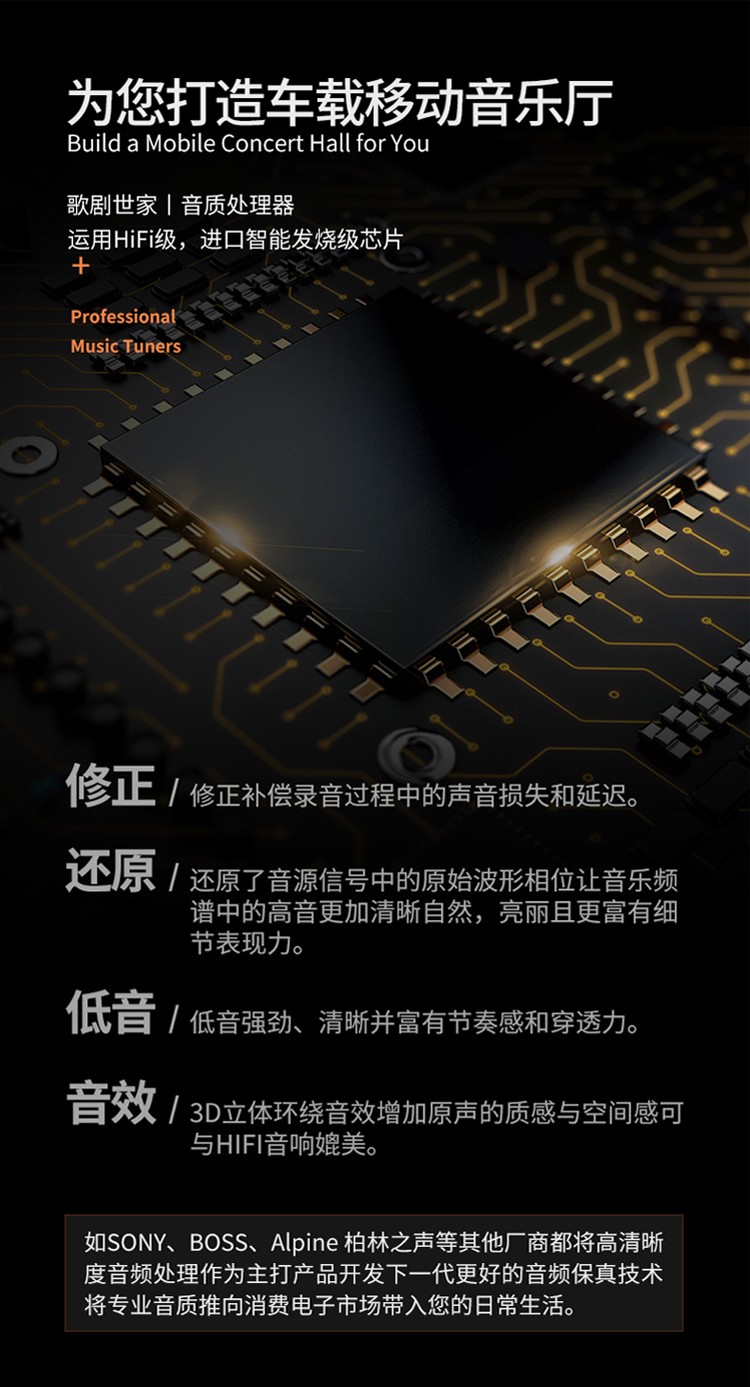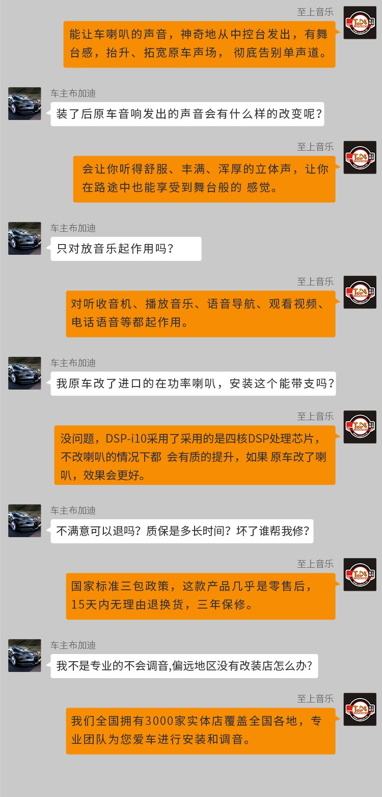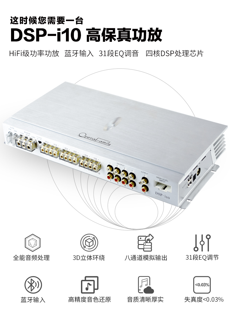 专车专用汽车音响功放DSP-i10采用专车专用线材,实现三百多种车型与原车对接而不破坏原车的线路,实现无损升级音响系统。扩张用的8路RCA输出,满足音响爱好者大的可玩空间。